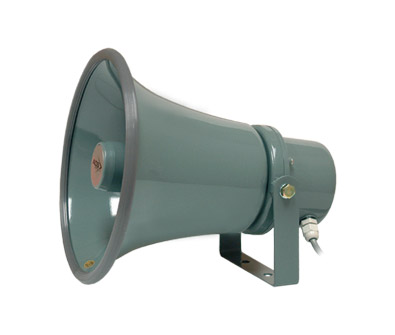 Two ranges of IP66 rated, outdoor, horn type loudspeakers, all with integral 100 volt line transformers, with externally selected power taps. The Panther range have ABS bodies, the Puma have spun metal bodies. All units are supplied complete with 'U' bracket.