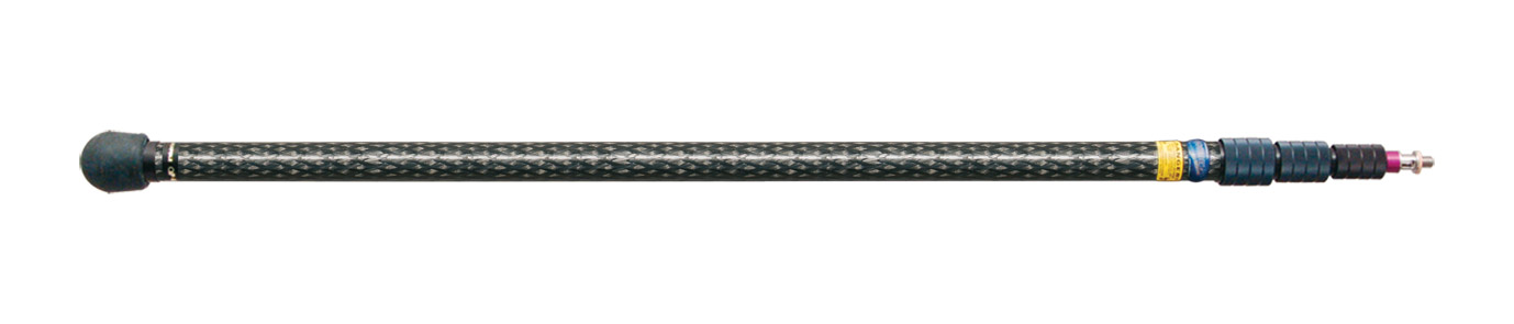 Quickpole range is a series of finely engineered, carbon-fibre, 4-section boompoles. They are constructed using high modulus carbon-fibre tubing with 1.5mm wall thickness, giving increased stiffness at lengths over 5 metres but retaining a good strength-to-weight ratio. Due to the wall thickness and one carbon-fibre crosswinding, the tubes are very strong in the compression mode and can be stood upon without breaking. With very substantial aluminium screw locking rings, extra-thick tubing and stainless steel 3/8 inch mounting thread, these deluxe booms are well up to daily scrambles with the ENG pack, whilst special attention to bushing arrangements helps them generate very little boom noise; ideal for more sophisticated drama and feature shoots.