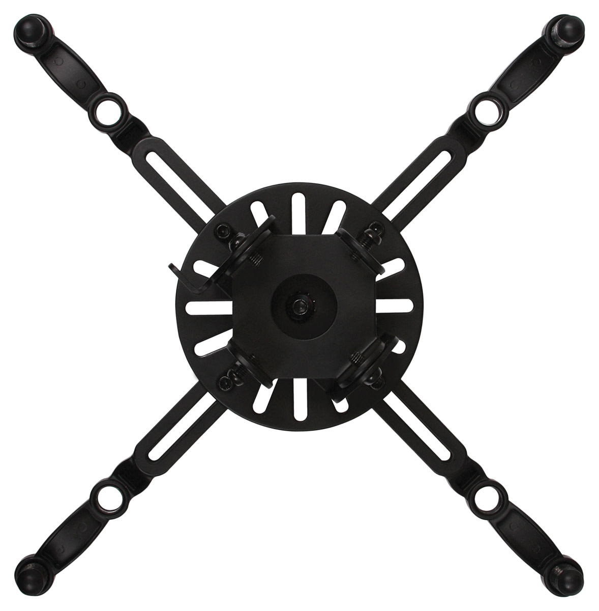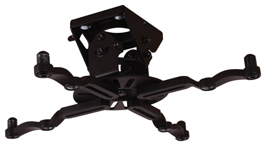 B-Tech BT899 projector ceiling mount is compatible with projectors weighing up to 25kg and having universal fixings measuring a maximum of 370mm apart. The mount can be used with projectors with M2,.5, M3, M4, M5, or M6 fixings. The included locking screws can be used for additional security. BT899 can be mounted straight to the ceiling to give a drop of 122mm, however it is also available with longer, fixed drop as BT899-FD, and with adjustable drop as BT899-AD. Mounting hardware is included.