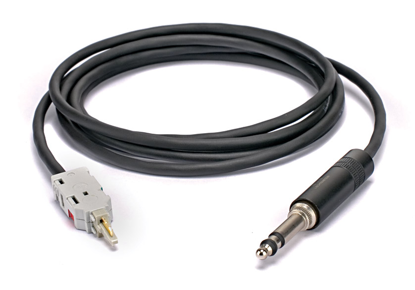 Circuits can be accessed and connected to other equipment using the 2m Krone plug to B-gauge jack (Neutrik NP3TB) and 3 pin XLR test cords, each available in ‘listen’ format (green XLR gland or jack cover) and ‘break’ format (red XLR gland or jack cover). In the latter the B-gauge jack or XLR is wired to the ‘connected’ side of the Krone plug. There are also listen cables to 1/4 inch headphone jack sockets (wired to accept conventionally configured headphone plugs: tip = left, ring = right, sleeve = common).