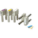 Anwender, die die Farbmarkierung nach der Installation der Brückenstecker oder zu einem späteren Zeitpunkt ändern möchten, können auf Brückenstecker mit variabler Farbgebung zurückgreifen. Zum Ändern der Farbe wird einer von sieben farbigen Papierbeschriftungsstreifen in eine entsprechende Vertiefung im Griff eingesetzt. Die Streifen lassen sich zur Kanalmarkierung zusätzlich beschriften. Jedem variablen Brückenkontakt liegen dazu eine transparente Abdeckung, zwei weiße sowie je ein schwarzer, blauer, grüner, gelber und violetter Beschriftungsstreifen bei.