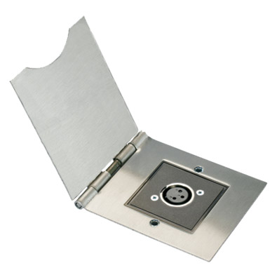 Available fitted with a non-latching XLR 3-pin female connector. They are also stocked punched (without connector) to take Neutrik D-series or Canford ‘Universal” series connectors, enabling a wide variety of other un-latched connector types to be floor mounted.