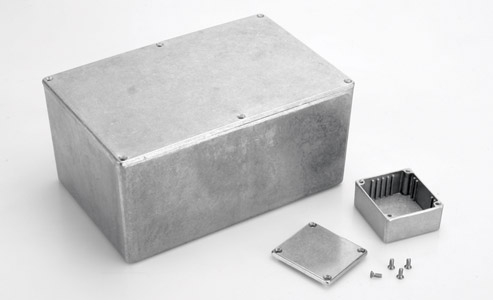 The traditional diecast box, available in 3 sizes, of which 1 has internal PCB guide slots.