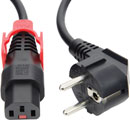 IEC Lock+ Stromkabel mit Verriegelung in verschiedenen Farben und Längen mit einfachem Auslöser für schwer zugängliche Stellen.