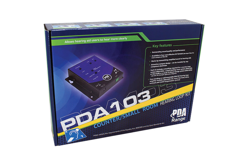 PDA103R includes 1x PDA103 amplifier, PL1/PSU1 power supply, APM outreach plated microphone with 6m cable, 40m of 0.5mm sq. induction loop cable and the accessory pack as decribed above.