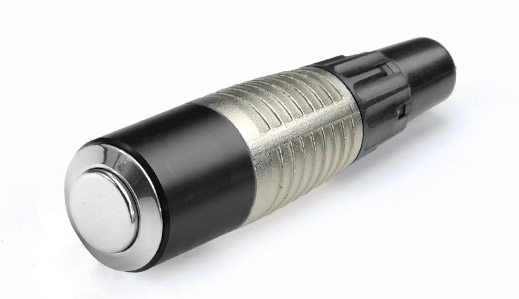Robust, cable-mounting push button switch unit, incorporating Neutrik cable housing and strain relief clamp. Switch is momentary action, with single-pole make contacts. Maximum cable size 7mm. The range of possible applications is very diverse, and includes TV weather presentation (graphics change), audio-visual presentation (slide change) and nurse call systems in hospitals.