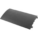 For those situations where cables need protection, but the full-size crossovers are too large, and the extruded rubber type are too small. They are moulded from black polyurethane, and have a gently-ramped ribbed top surface, which supports the weight of pedestrians, pedal bikes and small flightcases. Supports moulded into the base provide cable channels. Maximum cable diameter 30mm. Each unit is 430mm wide and 800mm long. Units link to the next one with “jigsaw” type lugs, moulded into the unit.
