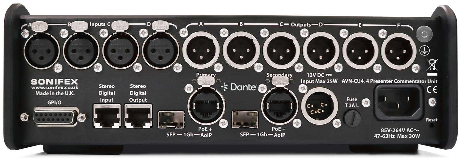 SONIFEX AVN-CU4 COMMENTARY UNIT 4x microphone, 4x headphone monitoring, Dante enabled Artikelnummer: 95-7665