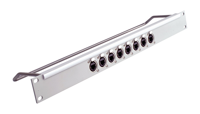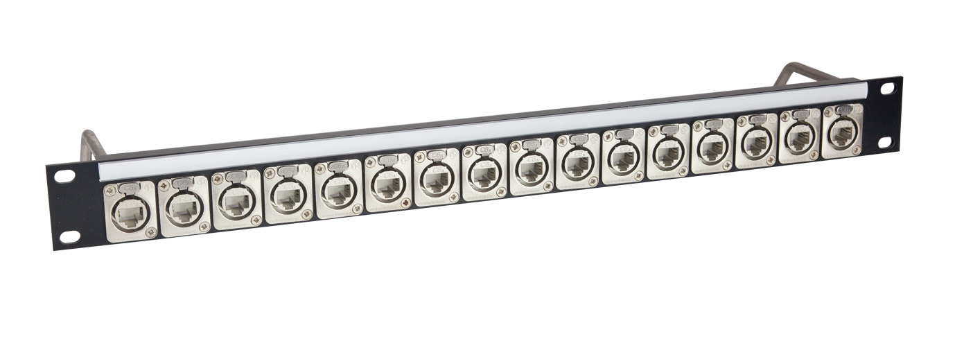 A range of 1U data termination and patching panels supplied fully-populated with Neutrik latching metal-shell Ethercon connectors. The Ethercon was designed for data transfer interconnections where a more robust connector than the basic RJ45 is required and are especially suitable for location and outdoor applications, stage, studio and other commercial and industrial environments. Also suitable for RS422 applications. The Ethercon connector utilises the robust Neutrik latch rather than the delicate plastic latch on the RJ45 (which is disabled in the Ethercon application) and are IP67 rated when mated.