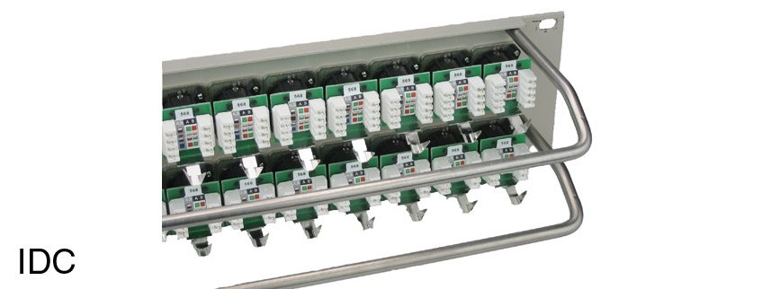 CAT5E versions are available either as feedthrough types with an RJ45 socket at the rear, or with individual Krone IDC blocks, integrated on the rear of each connector for direct termination of either UTP or STP data cables. In the case of STP cable screen continuity is provided by side screens within the RJ45 socket which extend to the rear and contact securely with and over the cable screen. A Krone inserter tool is required to terminate the cable. See COMMSCOPE (KRONE) LSA-PLUS CONNECTION SYSTEM - Accessories.