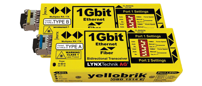 LYNX YELLOBRIK OBD 1514 E FIBRE TRANSCEIVER Bidirectional Ethernet to fibre, singlemode LC Artikelnummer: 90-3017