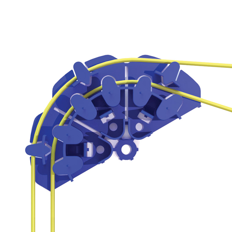 As with the splice tray this management spool is both easy to use and offers complete flexibility. Allowing multi-directional routing of entry and exit cables, maintaining a 30mm bend radius with either 250μm or 900μm buffered fibres, accommodating cable diameters up to 3mm. This versatile accessory allows the installer to use the complete unit for fiber storage or break it down into up to 6 individual components for fibre management/routing.