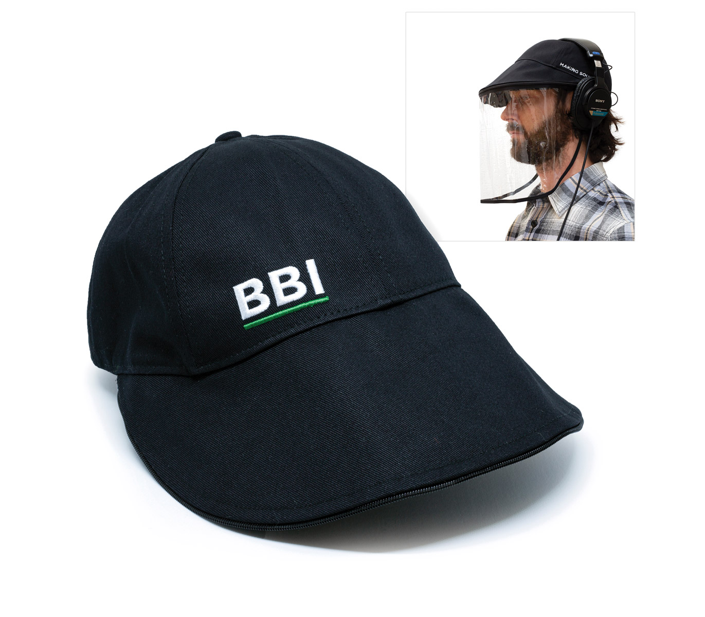Visor Cap Wide is a baseball cap with hidden adjustable ribbon strap. It is manufactured from 100% cotton and it allows the user to fix the included TPU (Thermoplastic Polyurethane) visor via a zip positioned around the brim of the cap. The visor has been manufactured from non-toxic material that can be cleaned using soap and water.