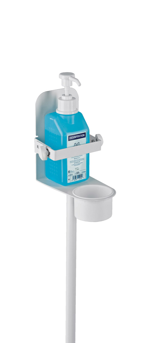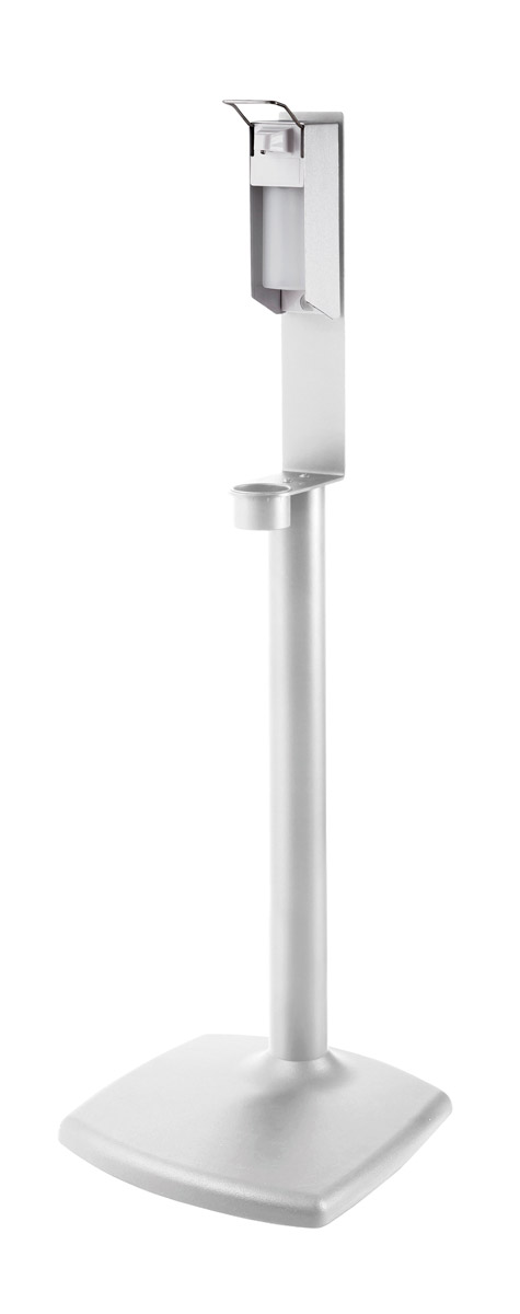 K&M (König & Meyer) offer a range of disinfectant stands, including floor standing, wall fixings, and table top stands. These stands have been designed specifically for hygiene reasons within education, offices, retail, restaurants, courtrooms, and hospitals or doctors waiting rooms where high numbers of people come together. Stands are available in white whilst some are also available in black.