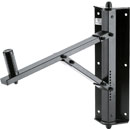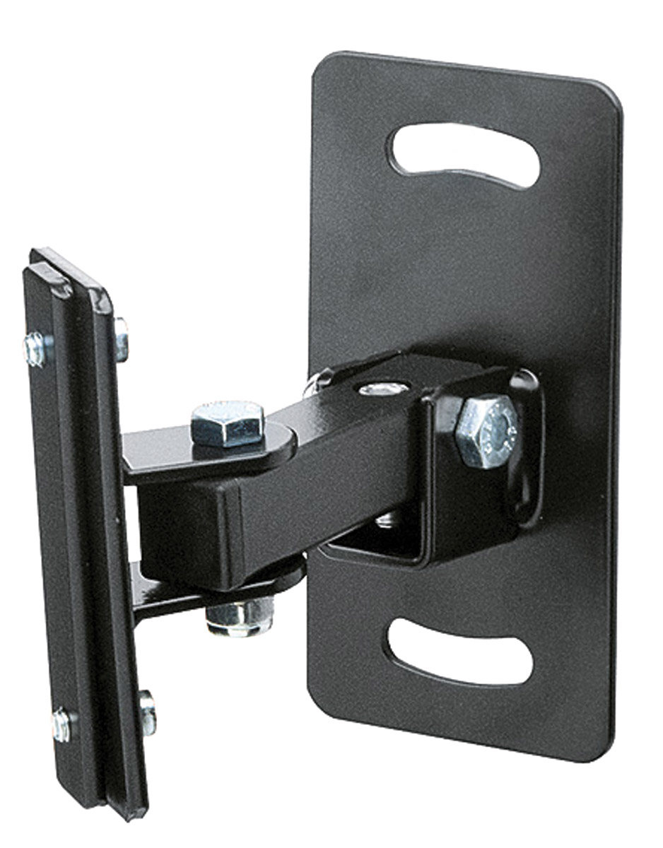 Adjustable wall bracket for smaller loudspeakers. Wall clearance to mounting plate: 105mm. Tilt adjustment of 0 - 15 degrees, swivel adjustment of 180 degrees. Maximum load capacity:10kg. Weight: 0.72kg.