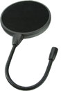 Fine mesh windshield to protect microphones from ‘popping’ and breath noise for close vocal work. Two fine mesh screens of fire-retardant fabric are supported by a circular moulding which is attached to a gooseneck stem, which has a 3/8″ Whitworth inside thread so it can be directly mounted on mic stands or standard accessories such as stereo bars, guitar clamps etc. The multipurpose stand adaptor allows the popshield to be fitted between the mic stand and clip, or fitted directly onto the stems of K&M stands and boom arms (11mm or 15mm diameter). Also suitable for use with most other makes of mic stand and boom arm. The fabric screens may be cleaned by immersing in windshield cleaner; replacement mesh assemblies are also available. Finish: Black.