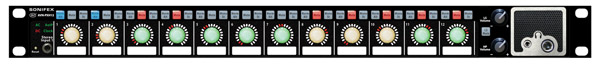 The stereo inputs are routed to twelve rotary volume controllers on the front panel that illuminate green for input levels between -60 and -18dBFS, amber for 'normal' input levels between -18 to 0dBFS, or red to indicate input levels above 0dBFS. Pushing any of the twelve volume controls also activates 'solo' for the related channel.