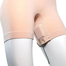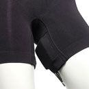 URSA Shorties are form-fitting 'shape-wear' designed for women and allowing the discreet mounting of up to three body packs utilising the three built-in pouches. The 'comfortable' shorts have a low profile when worn, and are often worn under tight outfits for live performance, TV and Feature Films. Available in four sizes and three colours (black, beige, and brown) , the Shorties feature two, non-slip pouches on the inner leg and a single pouch on the lower back. The body pack position is retained via a popper which keeps the transmitter securely rigged inside with aerials in an upright or down-facing position. The same is applicable to all pouches on the Shorties.