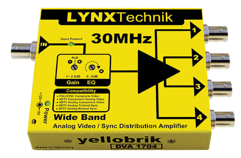 LYNX YELLOBRIK DVA 1714 DISTRIBUTION AMPLIFIER Video, 1>4, analogue/sync Artikelnummer: 90-3022