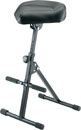 This stool with ergonomically shaped seat has been designed for musicians, and 'will perceptibly relieve pressure on your back and prevent premature tiredness'. The seat is covered with 'wear-resistant' fabric and can be freely adjusted to any angle using a level underneath. The seat height can be adjusted from 650 to 930mm. The foot rest can also be height adjusted. Integrated foot end caps ensure the stool is sturdy and safe. The stool can be folded flat for transport. Seat dimensions: 380 x 350mm. Weight: 6.13kg