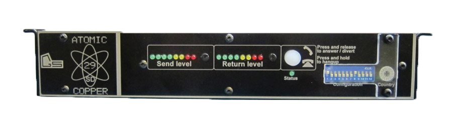 ATOMIC COPPER 29 is Glensound's flagship digital hybrid. Two digital signal processors are used; DSP1 is dedicated to the input/output process, DSP2 is dedicated to control the echo-cancellation routines. The twin DSP system results in a separation level, between the send and receive signal, better than 76dB. Three models are offered, rack-mounting single and dual hybrids and a desktop single hybrid version.