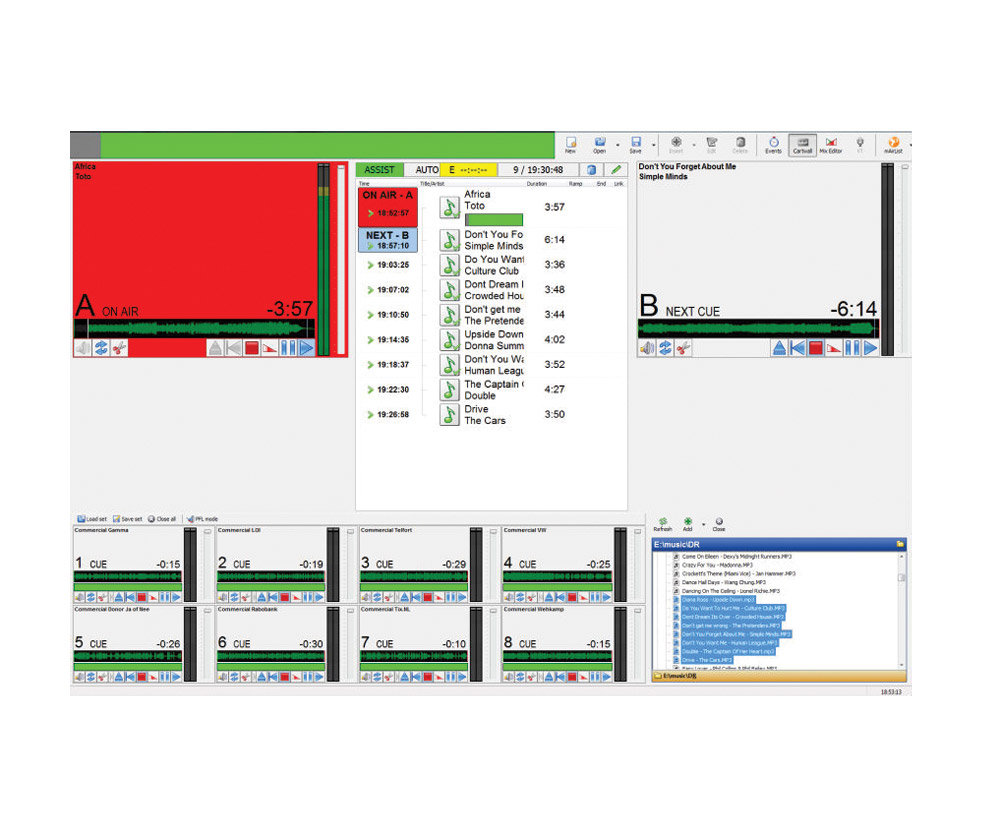 D&R Aircast is a radio automation system for Windows based PC computers. It is designed to suit smaller radio stations especially those in community radio, internet radio, hospital radio and schools. It supports virtually any sound card, works with standard PC hardware and offers smooth interfacing with D&R mixers. There are various remote control functions for controlling fader start, 'next', and other remote requirements.
