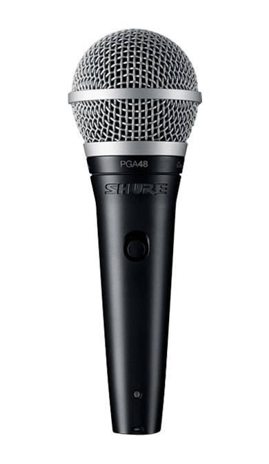 The PGA48 is a 'professional quality vocal microphone with an updated industrial design that features a black metallic finish and classic silver ball grille'. 'Ideal for use in spoken word and karaoke performance', the PGA48 has an on/off switch, and a dynamic cartridge with a cardioid polar pattern which 'picks up audio from the source while rejecting unwanted noise' and has a 'tailored microphone cartridge design specifically for clarity in the standard frequency range of speech'.