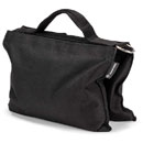 Available in three sizes; small (G100), medium (G200-1), and large (G300), and made of ballistic nylon, these sand bags have two pockets which are accessed by the hook-and-loop strips which act as fasteners. A central, reinforced, area forms a 'spine' separating the two pockets so the entire assembly can be hung over a horizontal bar or equipment leg in the manner of a saddle-bag. A nylon webbing handle is attached to this; as is a steel D-ring at one end of the spine and at the other a swivelling sprung hook (called a swivel bolt snap apparently) to clip to items with a suitable ring, such as some Manfrotto tripod mounted-booms.