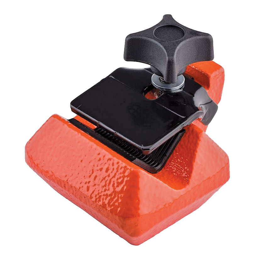 A 1.4kg brightly coloured iron counter weight balance that clamps onto tube diameters of 13mm to 30mm. A locking thumb screw allows for fastening.