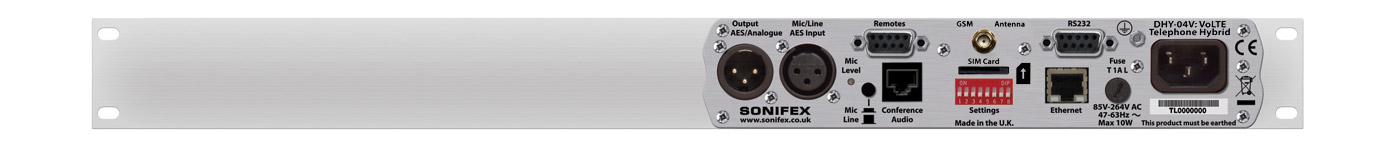 The VoLTE hybrid can be used on a cellular phone network, and provide HD Voice quality calling over 4G. As legacy 3G and 2G mobile services in many countries are now being switched off Sonifex have designed DHY-04V to accept a SIM card in the rear panel slot, along with the connection of suitable GSM antenna to receive and make broadcast calls over the cellular network. This is achieve by converting the 4G call to the 4 wire audio signal to and from a connected mixing console. The module used in DHY-04V can take and make calls on any 4G GSM network, and can fall back to 3G and 2G if required.