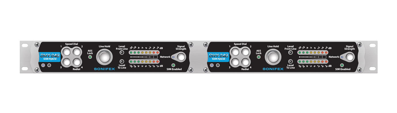 'Ideal for' studios in remote locations, OB vans and trucks on the move, and in emergency situations where a telephone landline can’t be guaranteed, DHY-04 series has all features of the DHY-04 together with some additional front panel indicators including two LEDs, one for SIM enabled and one for GSM Network availability; and a push button which allows the mobile signal level to be displayed on the meter LEDs.