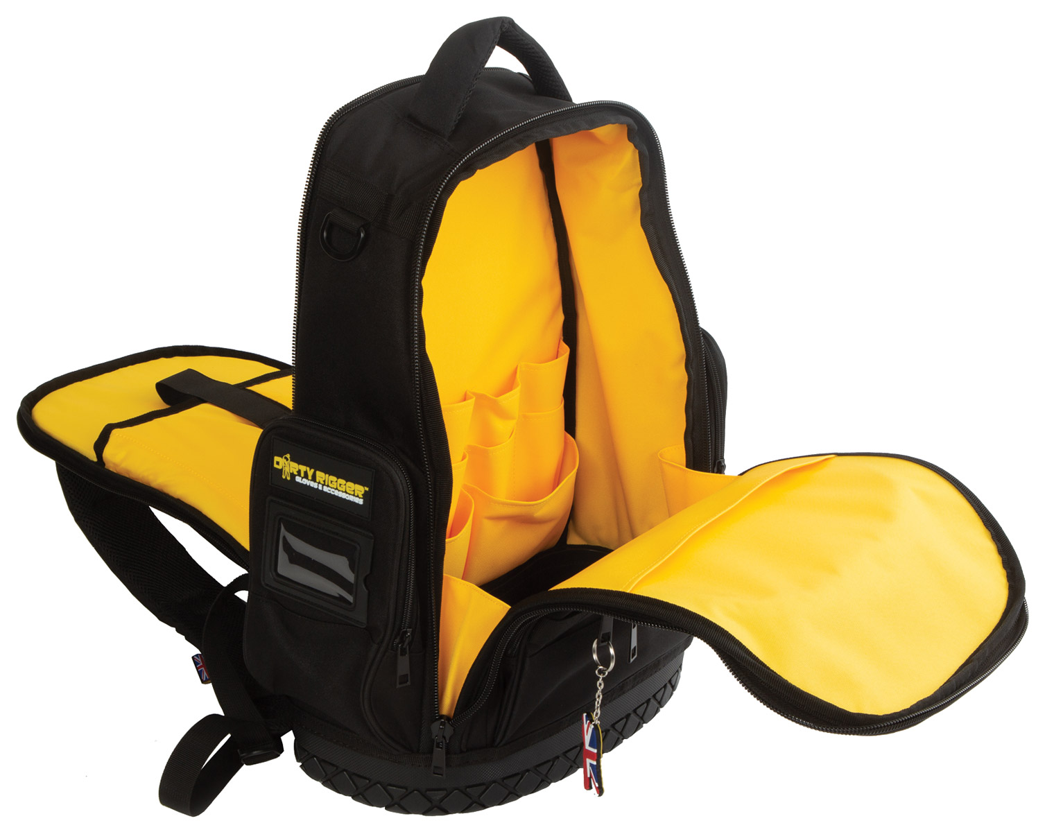 Designed by technicians, for technicians. The Dirty Rigger backpack brings together 18 months of product development with industry specialists from around the world, to deliver what they say is 'the only backpack an industry professional will ever need'. Made from ultra-tough 600 denier outer fabric with heavy duty zips and anti-puncture, water resistant and abrasion resistant base. Featuring a main storage compartment (32 x 49 x 14cm), front pocket (27 x 32 x 3cm), laptop compartment (30 x 44 x 3cm) and 2x side pockets (15 x 22 x 4cm), as well as four d-rings for additional attachments. Unladen weight: 2.1kg.