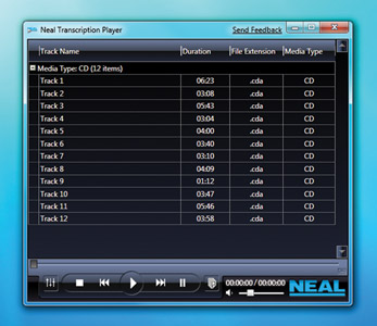 Perfect for journalists, researchers, or anyone manually transcribing audio, the player allows for easy pausing, rewinding, and variable speed control—so you can focus on accuracy without struggling with clunky audio tools. The NEAL Transcription Player software, for use on a Windows PC, enables simple and effective transcription of pre-recorded audio in applications such as evidential interviews, hearings, and meetings.
