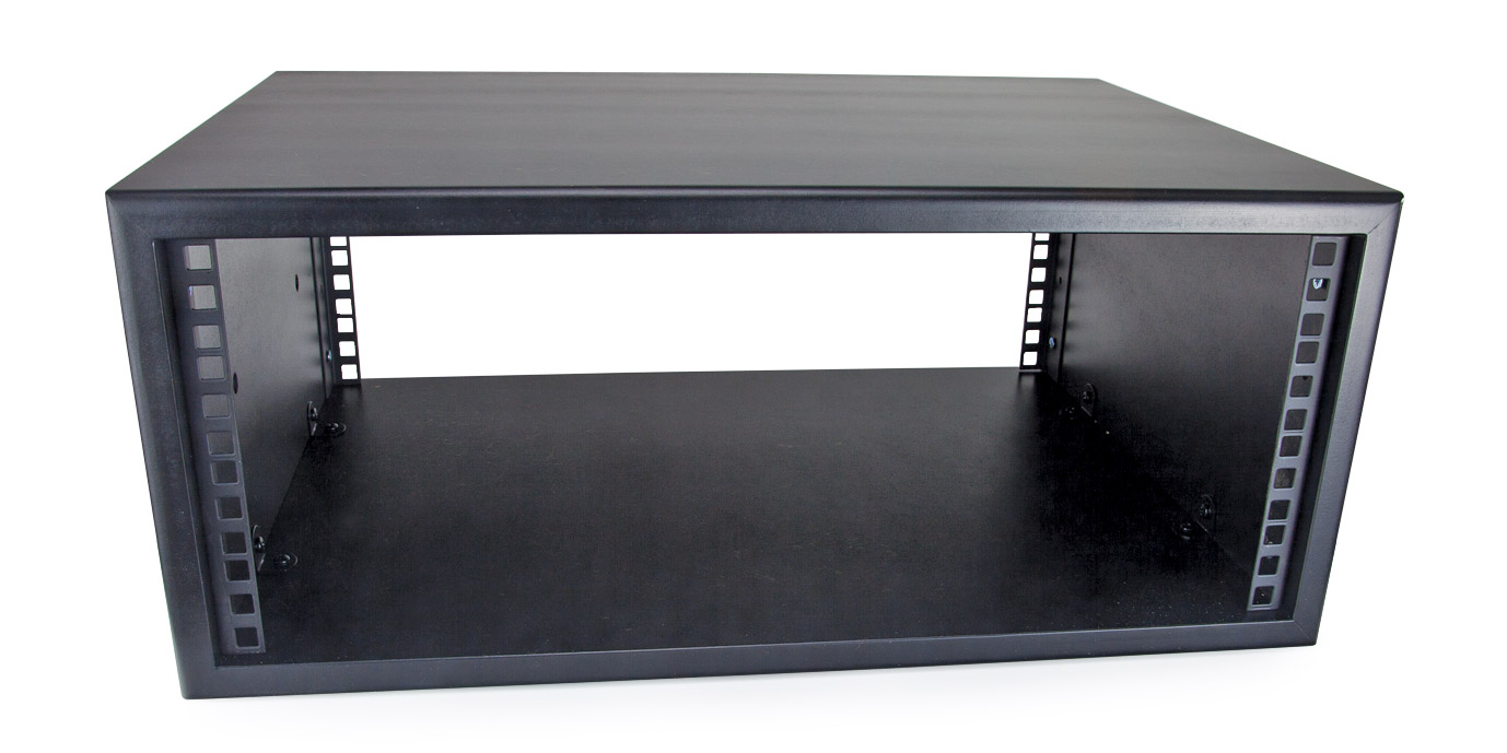 Constructed from 18mm moisture resistant MDF board with mitred joints and are finished with a black pre-catalyst lacquer for an aesthetic appearance. With a depth of 380mm, they are open at the front and rear, with 19-inch mounting facilities at the front. They are supplied pre-drilled in two locations for the fitting of truss clamps (included) to suspend the pods in the vertical orientation.
