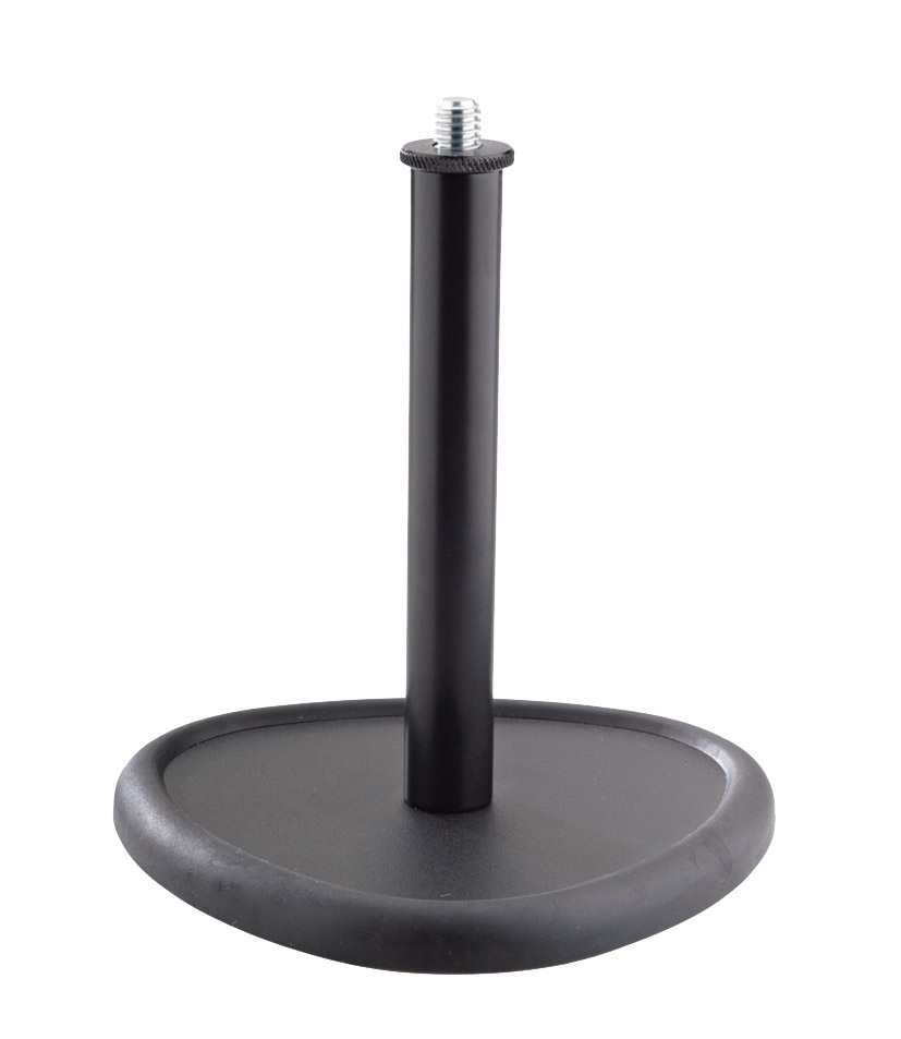 Table-stand with shock-absorbing, round base. Diameter 130mm, height 175mm. Weight 1.34kg. Black finish.