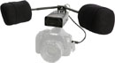 This is intended to be mounted on the MP1 preamplifier, by clipping to an attached 'UniSon' connector as fitted to Lindos output cables, with the MP1 attached to the accessory shoe of a DSLR camera. Two telescopic 'stalks' support the microphone capsules, and swivel in the horizontal plane. As a result they are placed to the front and side of the camera, reducing the pick-up of the noise made by the camera motor used for focusing. The microphone capsules are the same as the MM4, short cables connect to the MP1 preamplifier.