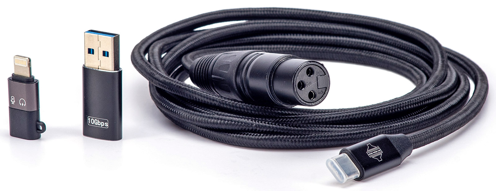 SONTRONICS XLR-USB-C CABLE 2m, with smartphone and USB-A adapter