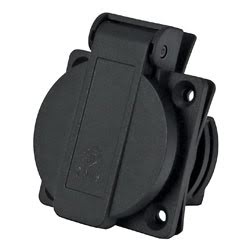 Robuste, einbautype Schuko-Buchsen, die Schutzart IP44 erfüllen.
