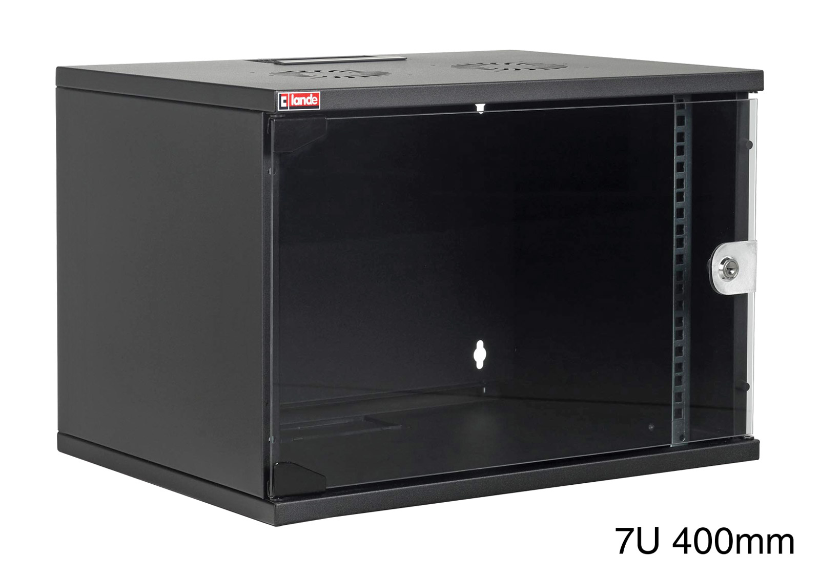 LANDE NETBOX SOHO WALL RACK CABINET 7U, 300d, with glass door, black, flat-packed