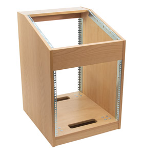 These floor-standing trolleys combine a 15 degree sloping top rack space intended to house shallow equipment such as rack mounting mixers, with rack spaces to both the front and rear of the trolley for AV equipment such as amplifiers, media players, routers/switchers or patch panels. Intended for use in such environments as board rooms, home studios, universities, lecture theatres and conference centres.