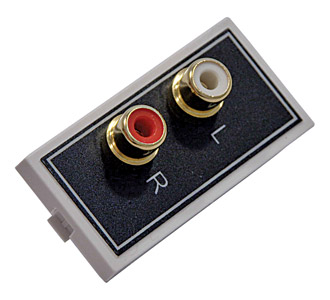 Two gold plated RCA (phono) sockets for audio (labelled left and right) with rear panel solder connections. Depth required: 15mm.
