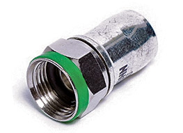 For RF applications, these 75 ohm connectors are typically used for RF distribution. They feature a nickel or gold plated solid brass body, with a solid hex nut for easy installation and 360 degree cable gripping sleeve with a watertight O-ring. The centre conductor of the cable forms the centre pin of the connector.