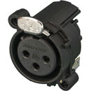 Panel connectors are available in Neutrik’s A, B and D series formats. The A series are plastic bodied, with optional coloured plastic escutcheons. B series are metal bodied with nickel plated finish. D series are also metal bodied with nickel plated finish, and suit Canford’s “Universal” series panels and stageboxes. Connections are for horizontal or vertical PCB mounting, or with an integrated Krone IDC block for direct wire termination. An additional screening pin is provided on PCB mounting types, which connects with metal side screens in the RJ45 mating recess. The IDC version has the same side screens, but in this case screen continuity is provided by a special metal plate that contacts securely with and over the cable screen. A “back-to-back” version is available in the D-series format, this has an RJ45 socket at the rear.