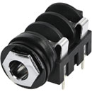 These solder connection and horizontal PCB mounting panel mount 6.35mm jacks offer a wide variety of combinations of contacts and mounting options. They are available in mono and stereo versions with switching and non-switching contacts, and three nose types - fully threaded, half threaded and chrome ferrule.