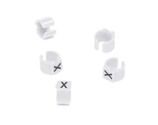 Markers are available with letters printed black on a white marker and numerals 0-9, coloured according to the resistor colour code (RCC) or printed black on a white marker (BW).