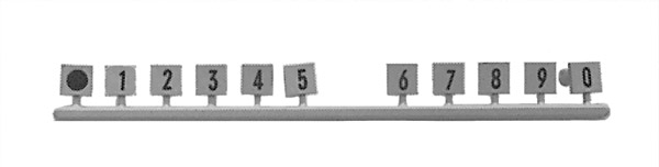 Push-on number markers for modules. Supplied in strips of 10 markers, either 0 - 9 or 10 - 100 (10, 20, 30 etc).