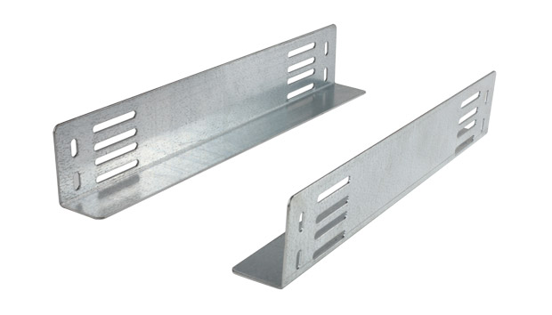 These are 'L' section, folded-steel supports which attach, at front and rear, to the inner face of the vertical mounting profiles of a rack, using cage nuts, washers and screws, included, providing support for equipment through a large part of the depth of the rack. A variety of elongated, punched, mounting-points allow for adjustment. Finish: Galvanised. Priced and sold in pairs.