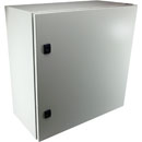 The main cabinet is a welded, folded steel construction, using up to 1.5mm sheet depending on the model. The enclosure edge is folded in the shape of a channel to avoid water stagnating on the seal. The rear panel is sealed other than the four depressed fixing points for mounting the unit on the wall.
