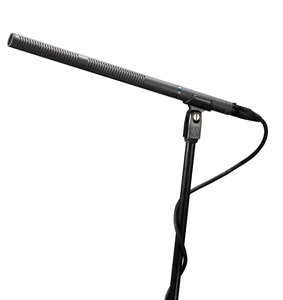 This is a line plus gradient condenser design which operates on battery or phantom power and is designed for 'field audio acquisition in film/TV/video production, professional recording, wildlife recording and broadcast applications'. It mounts conveniently on a DV camcorder, and remains out of the frame even with compact digital cameras. This short shotgun offers 'outstanding long-distance audio pickup due to the narrow acceptance angle of line plus gradient design. A recessed switch introduces a low- frequency roll-off, 80 Hz, 12 dB/octave. It uses a single 1.5V AA cell, 1200 hours alkaline, or 11-52V DC phantom power. Output: balanced, 3-pin XLR male. Supplied without a cable. Impedance: 200/300 ohms, phantom/battery powering. Maximum input: 129dB/115dB, phantom/battery powering. Response: 20Hz-20kHz, sensitivity 10mV/8.9 mV, phantom/battery. Dynamic range: 112dB/98dB, phantom/battery, at maximum SPL. Dimensions: 279mm long, 21mm diameter. Weight: 145g.