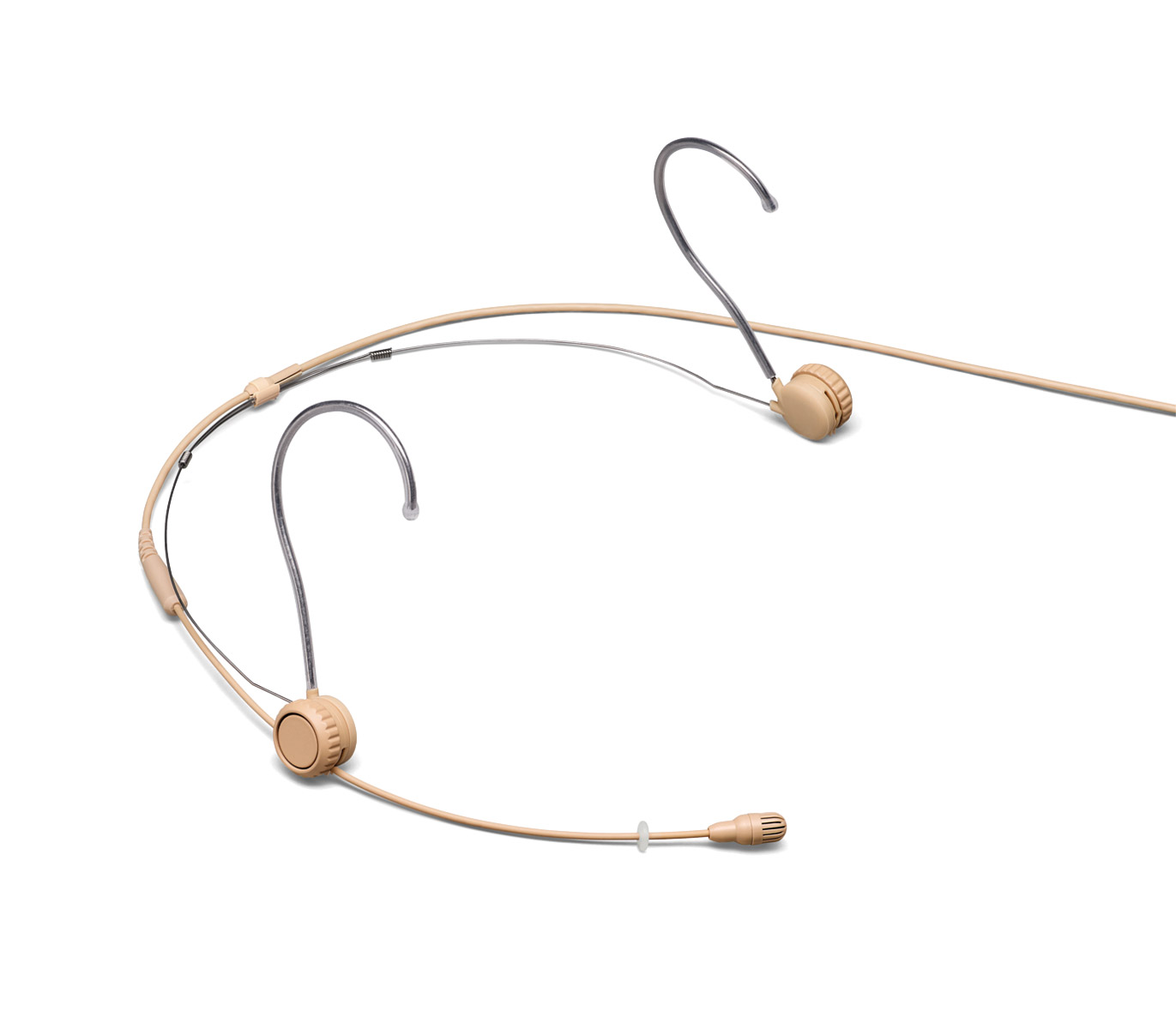 Shure TwinPlex omnidirectional headworn microphones have been designed for use in the theatre, broadcast TV, Film and AV sectors. These condenser microphones use the same element as TwinPlex miniature microphones, see SHURE MICROPHONES - Miniature however they are combined with an ‘ultra-light’ adjustable headset frame.